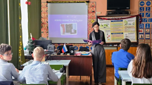 15.12.2025Секретарь участковой комиссии №1113 Наталия Быкова провела для восьмиклассников Ряженской школы тематический классный час, посвящённый Дню Конституции РФ. Цель мероприятия - помочь ребятам понять значение Конституции и осознать свои права и обязанности. Наталия рассказала об истории принятия и о ключевых положениях Конституции РФ. Ребята задавали вопросы о применении законов в жизни, вместе разобрали реальные примеры.